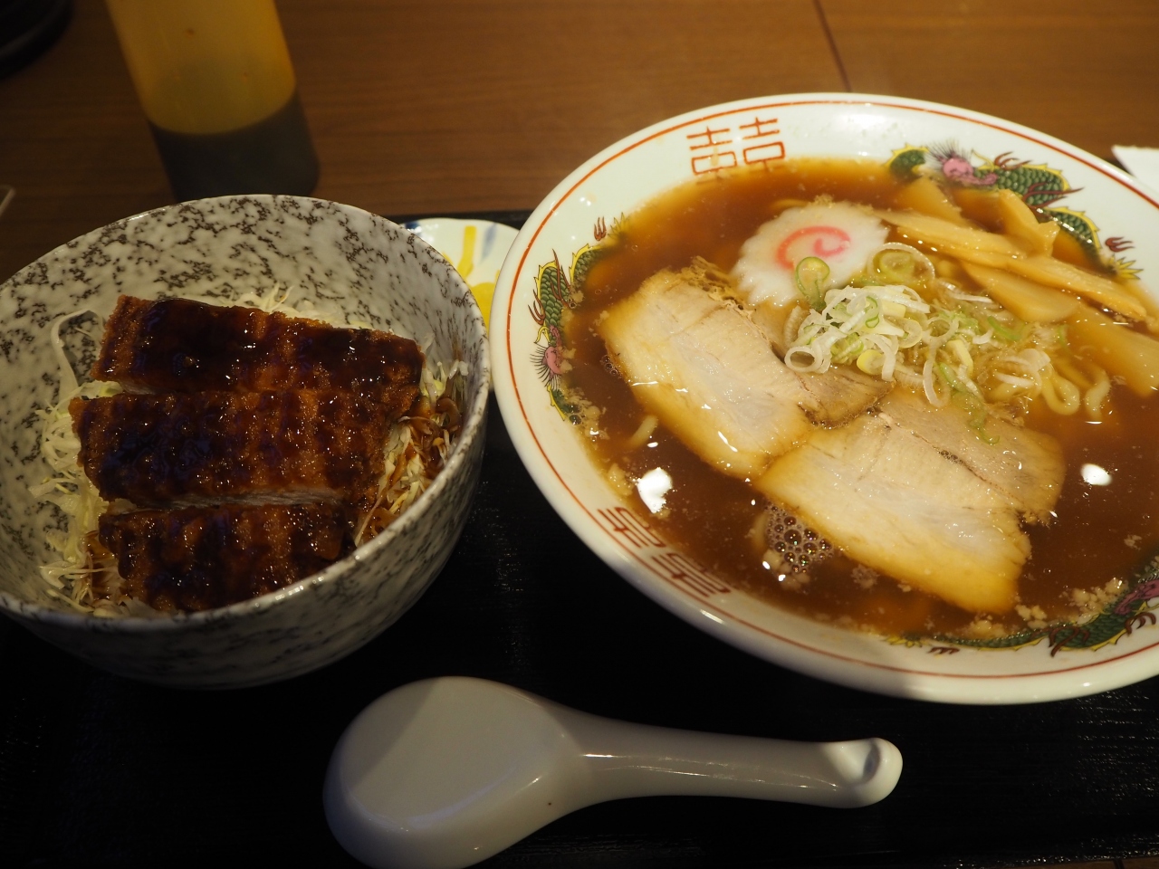 まるたか食堂は会津若松駅を出て右側に50メートルほど歩くとある食堂です。喜多方ラーメンとソースカツどんがメインのメニューです。ちょうどラーメンとソースカツどんのハーフがあったのでそれを注文しました。ゆで卵がサービスで付いていました。両方ともにほぼ初めて食べるのであったので、おいしく食べれました。