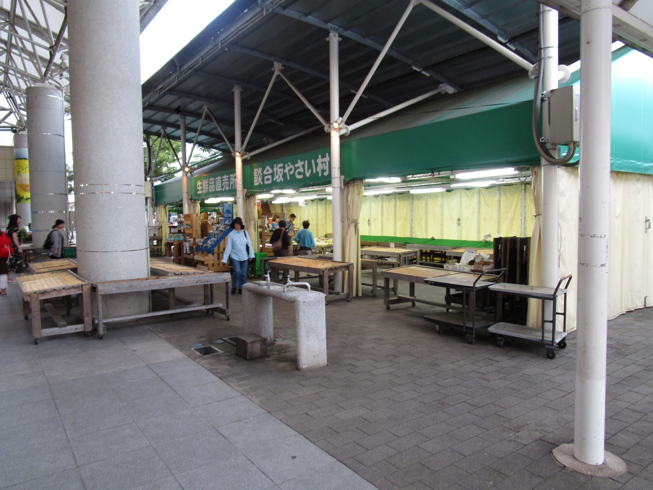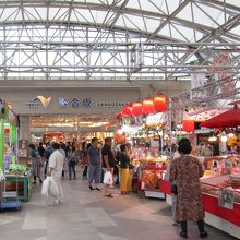 大屋根下の「屋台村」、やさい村:飲食の屋台や地元農作物などを販売