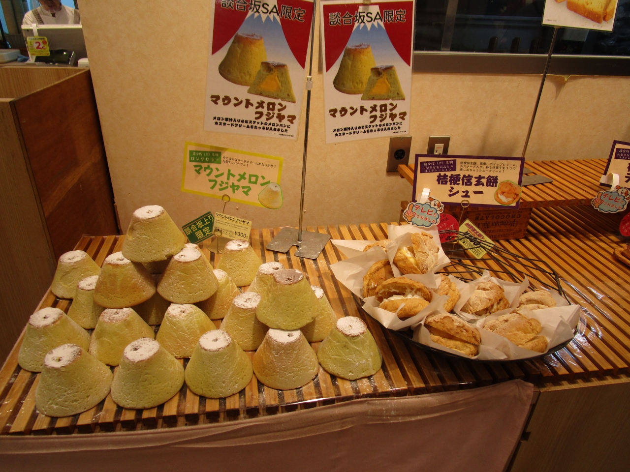マウントメロン・フジヤマという円錐形のメロンパンが一押しのようでした。