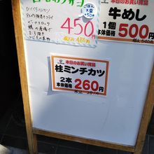 最近では近隣の有名百貨店にも多数出展されてますが、こちらは非常に小さい店舗です。お昼時にはお弁当を買い求めるお客さんもたくさん見かけます。ボリューム満点の日替わり弁当もあります。