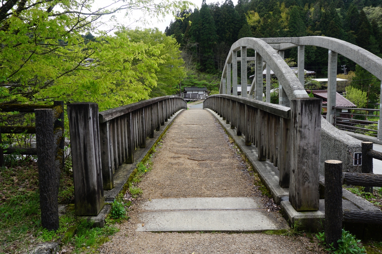 コンクリート造りの自動車を通す橋と人が渡る木橋