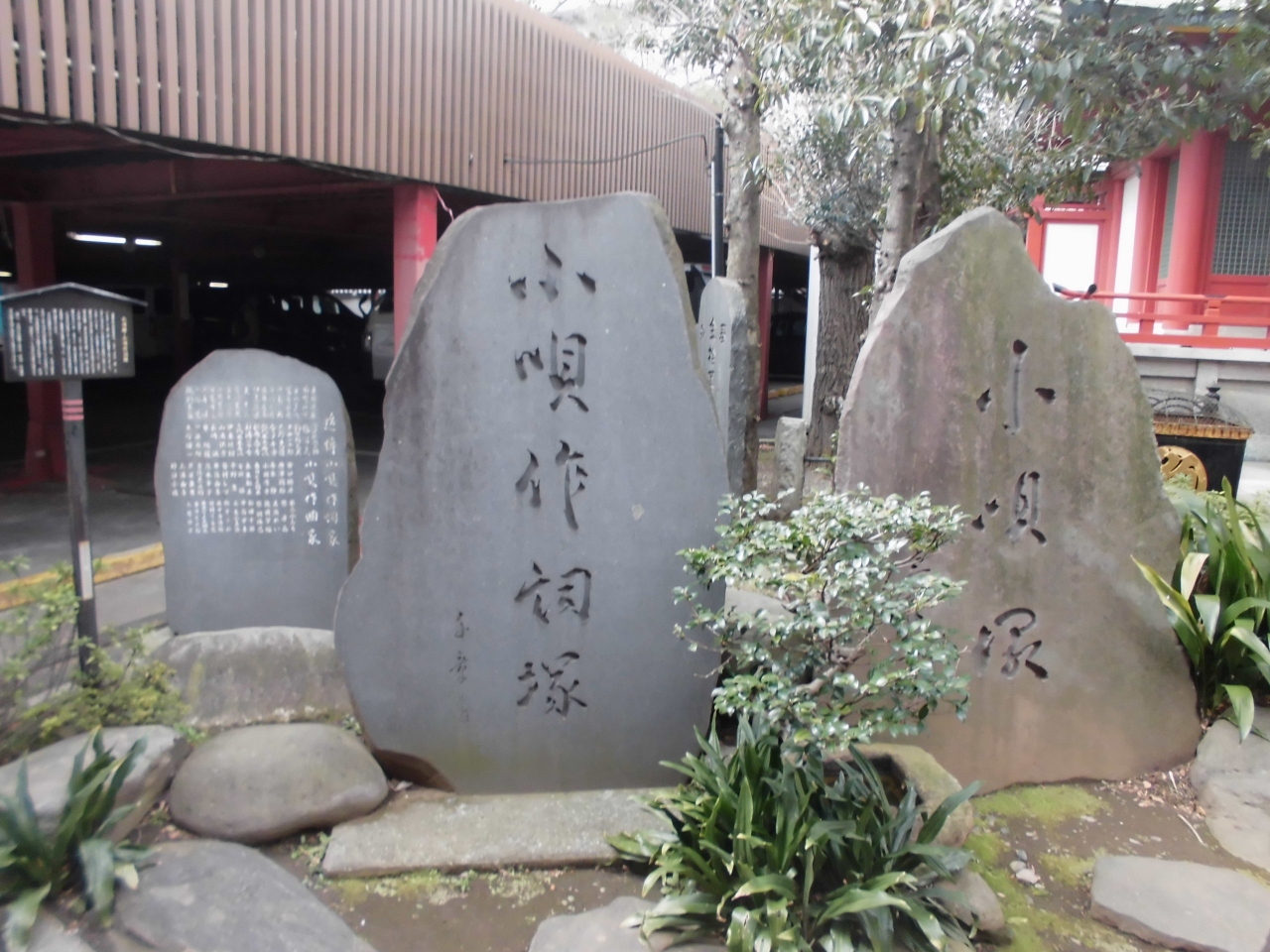 神田明神内に比較的大きな塚が2つ横に並んでおかれているのがあります。それが小唄塚と小唄作詞塚です。先にできたのは小唄塚の方で、作詞塚の方はそれから30年後にできたそうです。江戸小唄には神田祭が随所に取り入れられているのが作られた由来だそうです。
