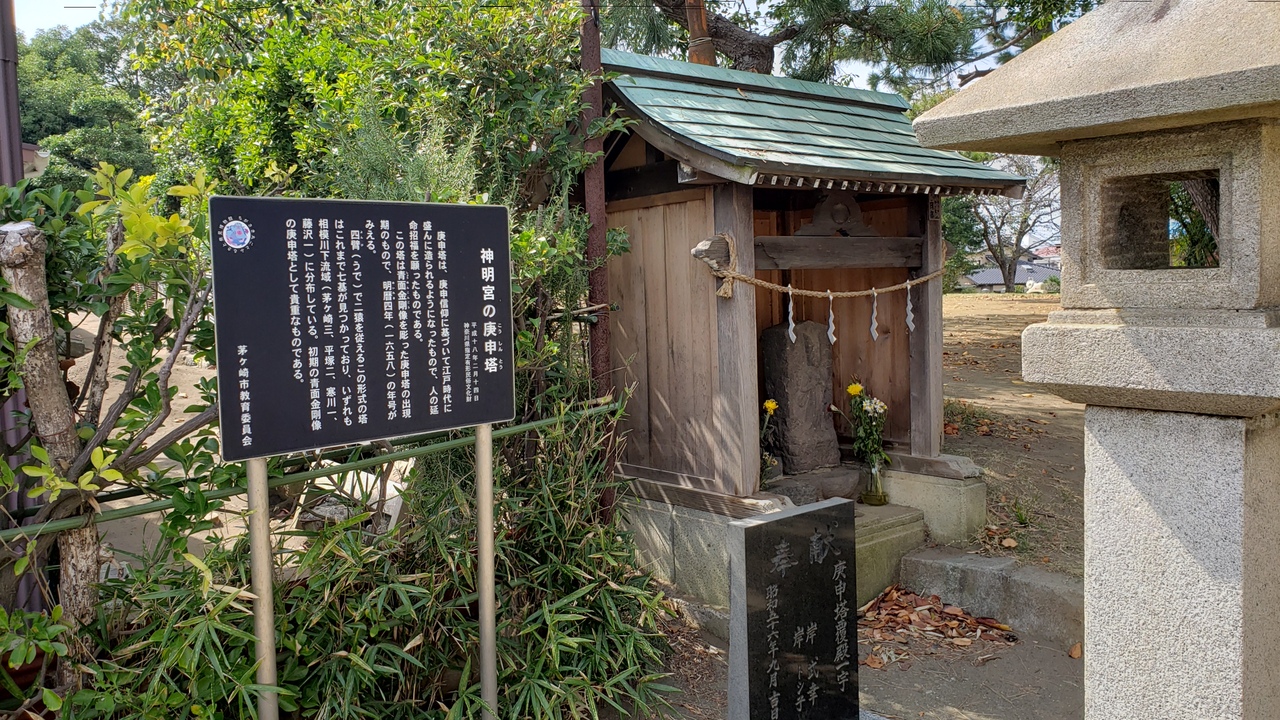 小さめの鳥居と何もなく綺麗な参道の奥に社殿がありますがこちらの特記すべきは社殿手前左にある庚申塔です。