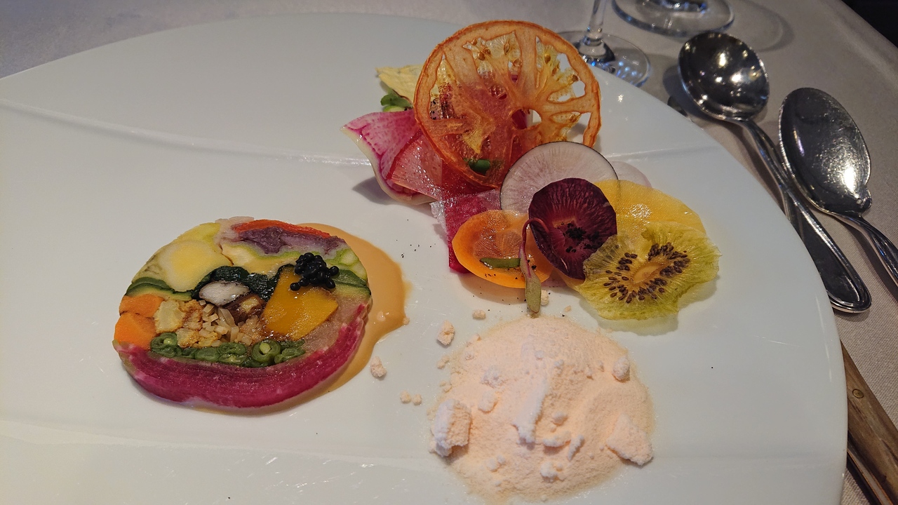盛り付け、味付け、素材のアレンジが、なんとも斬新でした!北野ホテル内のカジュアルレストランは普通の洋食ですが、こちらの高級レストランは別格でしたね~。鹿肉も美味しかったですし、まあ最後のデザートとお茶菓子の豪華なこと!テンション上がりまくり!
