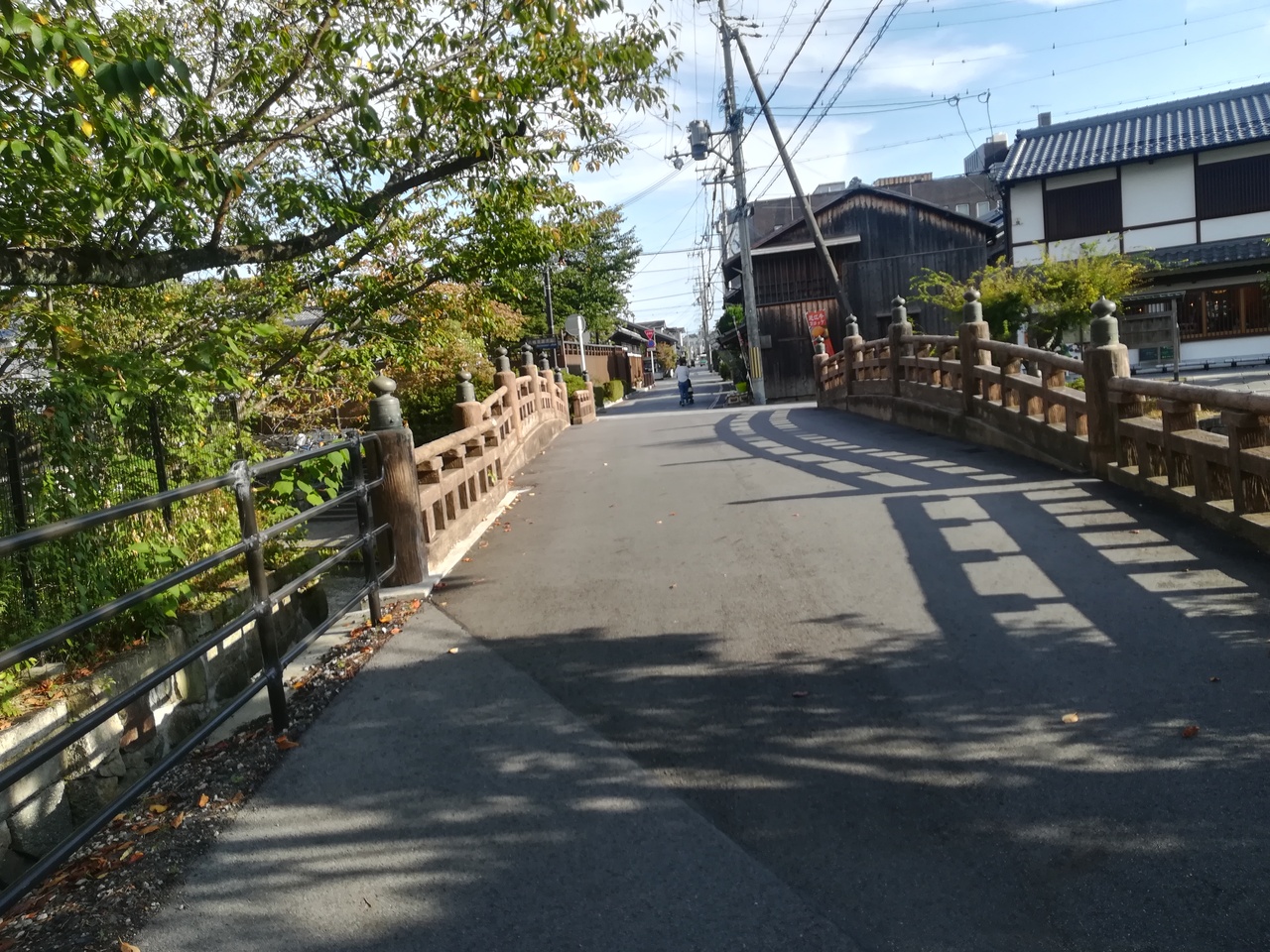 近江八幡市の八幡堀に架かる橋で昔ながらの雰囲気を残しています。堀と橋、セットで映えます。よく時代劇を含め様々な撮影にも使われています。橋の上から堀を見下ろすのも絵になるし、川沿いから橋を見上げるように見るのもとても素敵です。