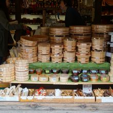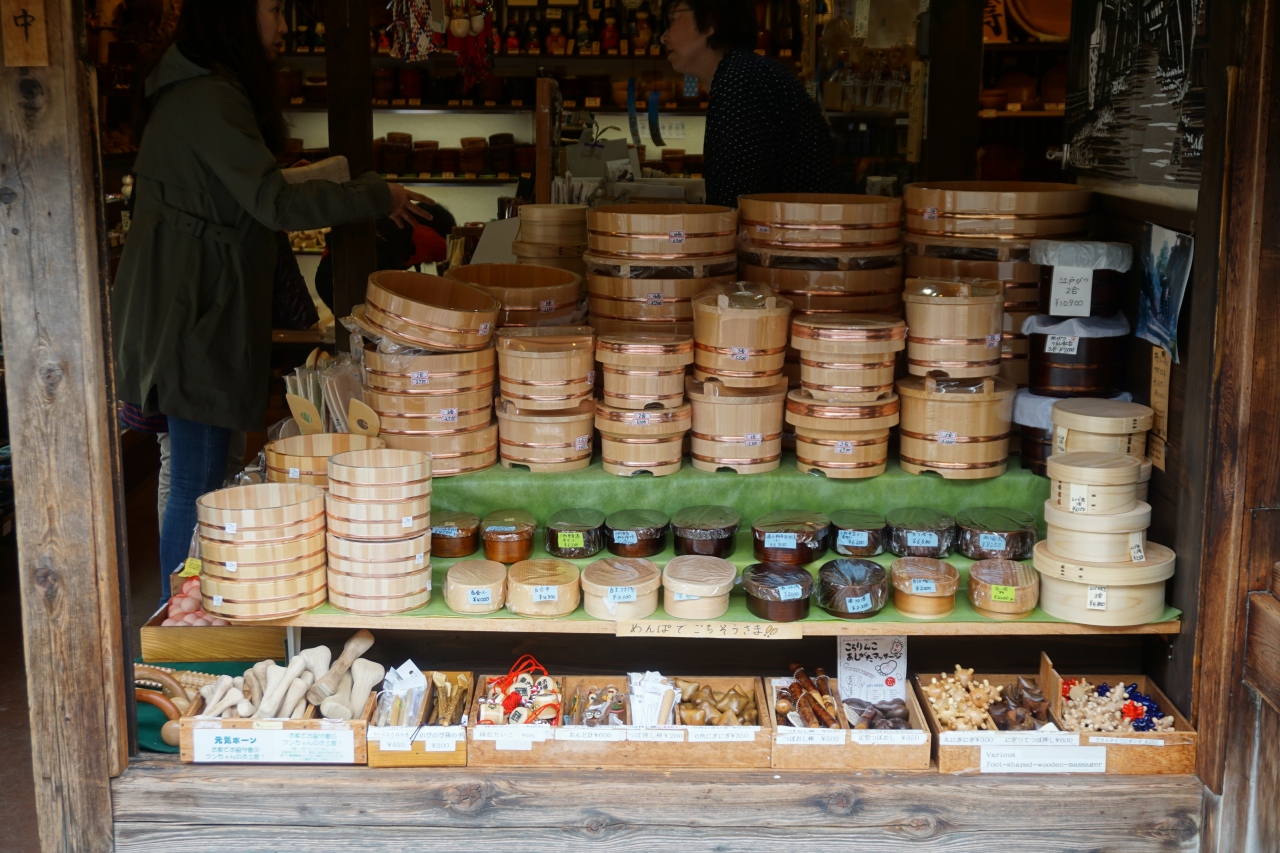 木の店 あぶらやは、妻籠宿の中ほど。あけっぴろげで店内の商品が通りから丸見えという、ここも妻籠スタイルのお店。木曽の木工製品を専門に扱うお店です。