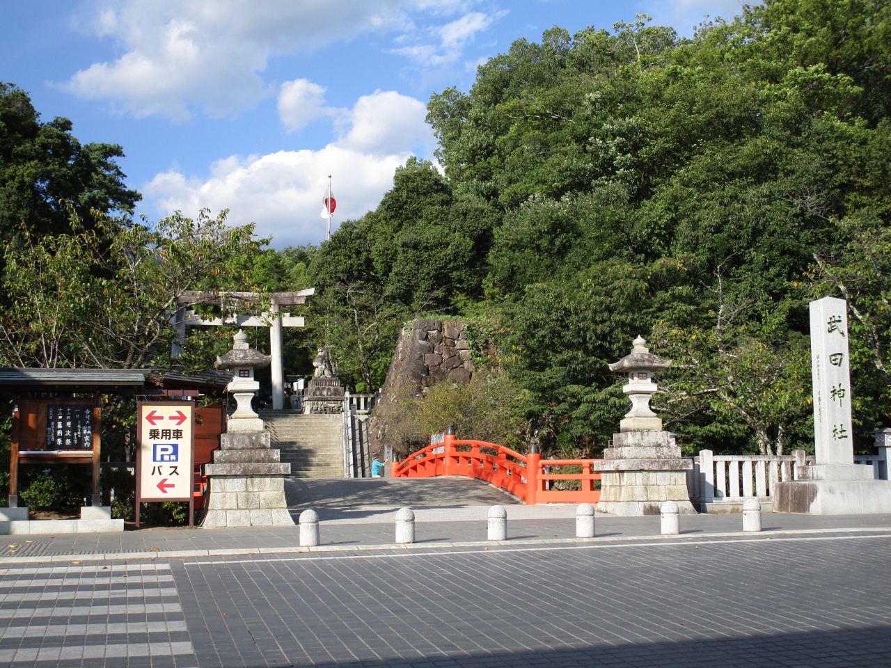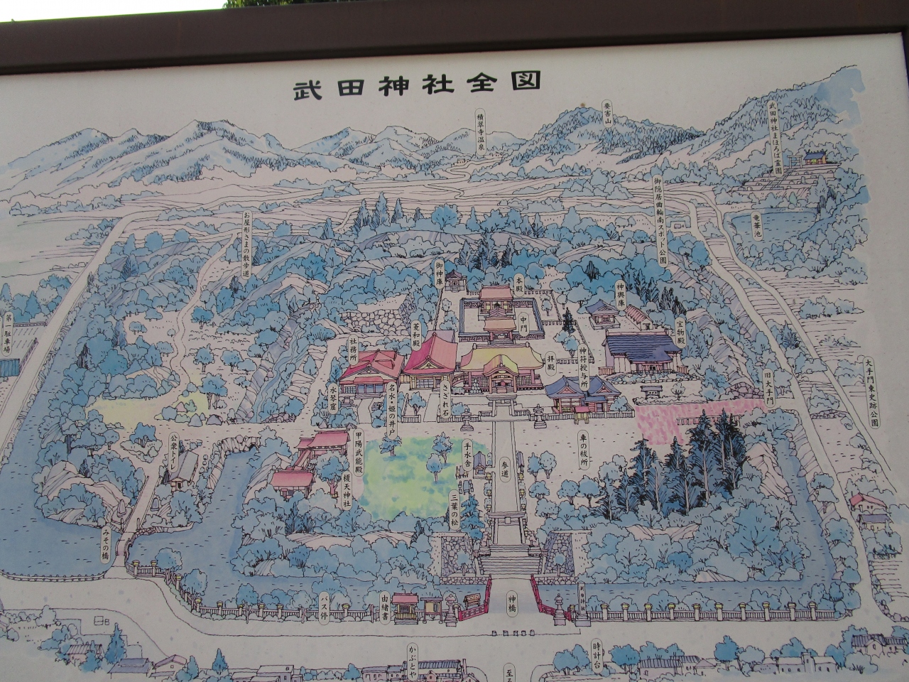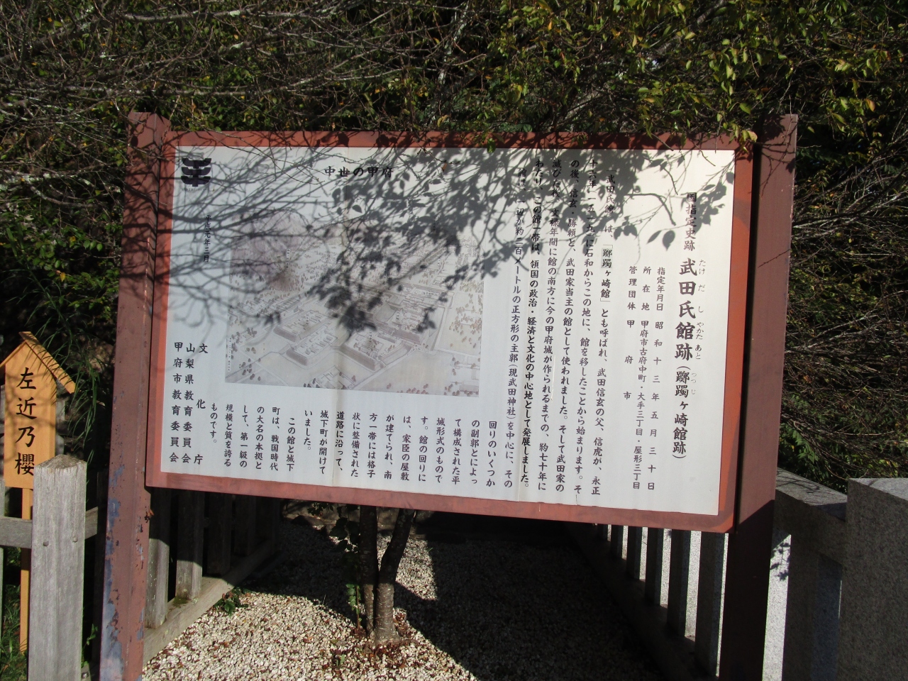 現在はキティちゃんの石像がある躑躅ヶ崎館の跡地(武田氏館跡)に建てられており、武田信玄を祭神とする神社です。