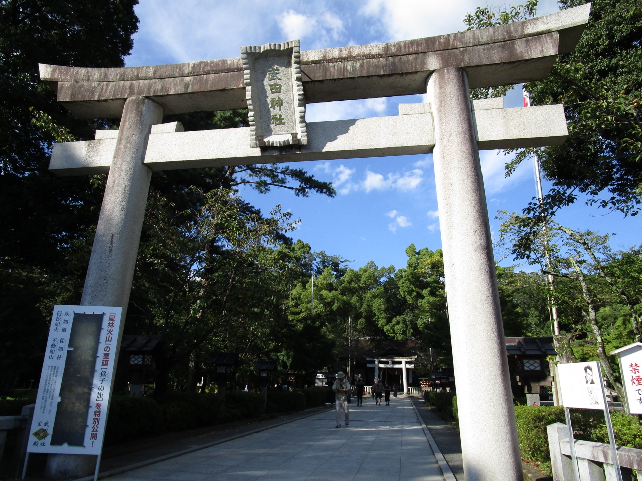甲府駅から北の方へ車で10分ほど行ったところにある武田信玄公が拠点とした躑躅ヶ崎館跡に建つ武田信玄を祭神とする神社です。