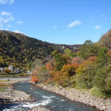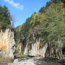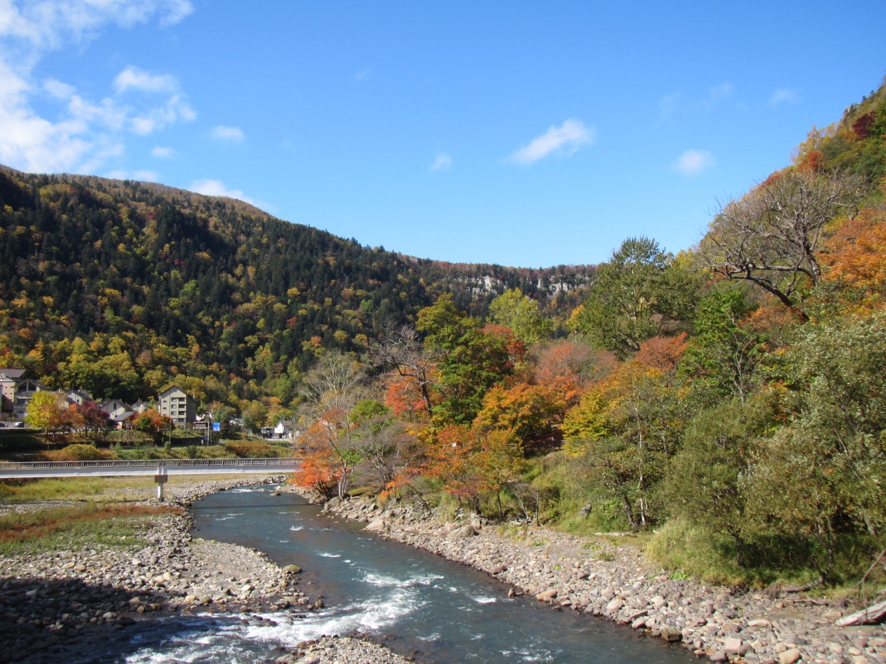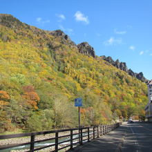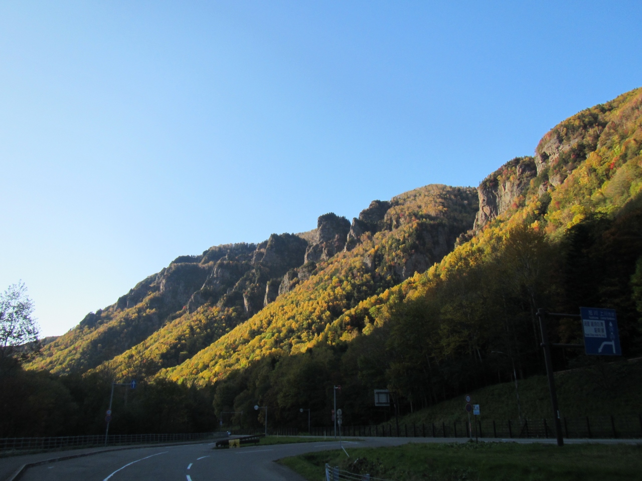 多くの観光客が、黒岳ロープウェイや銀河・流星の滝、大函を訪れて紅葉を眺めていましたが、意外に見事なのが上川駅方面から温泉街に至るまでの峡谷の景色です。