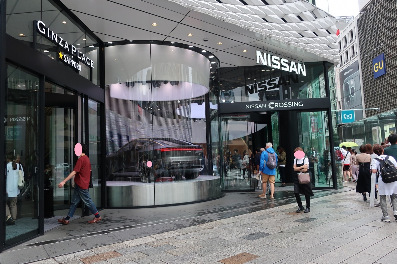 銀座4丁目の交差点付近にある複合ビルです。日産のショールームやソニーのショールーム、カフェ、イベントルームなどがありました。日産のコンセプトカーを見て、どんどん上へ上がるとソニーの商品がたくさん。また、銀座プレイスの上の階からの眺めも楽しめます。