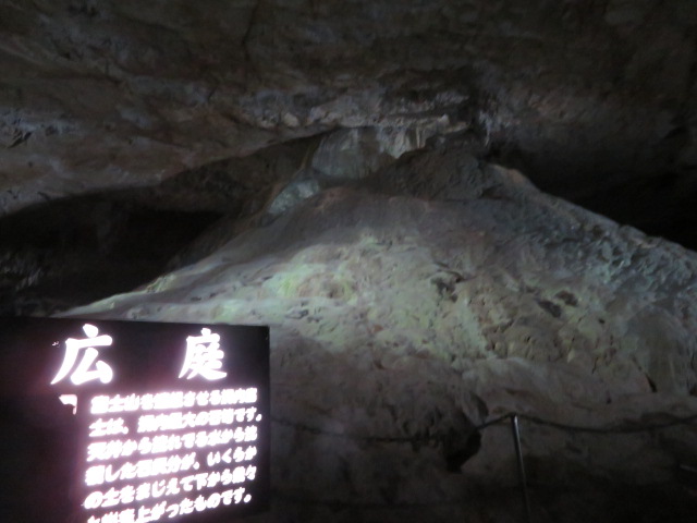 秋芳洞内には、「広庭」というドーム状に開けたかなり広い空間があります。この空間の中央にそびえているのが「洞内富士」です。石灰分を含んだ水が堆積したわずか高さ5mの山ですが、確かに富士山の形をしているのが笑えました。
