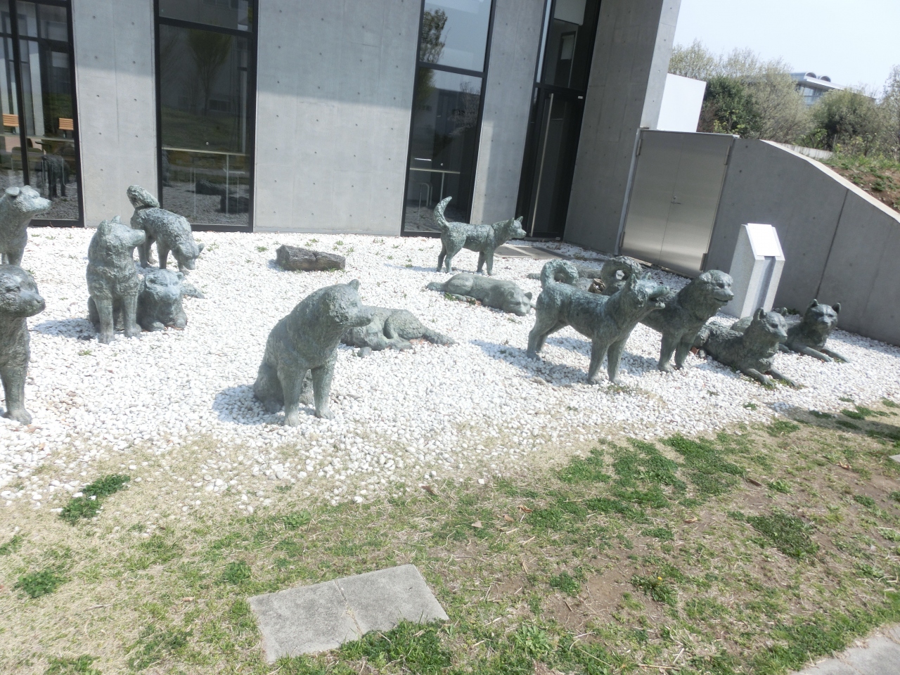 入り口には秋田犬の群像。