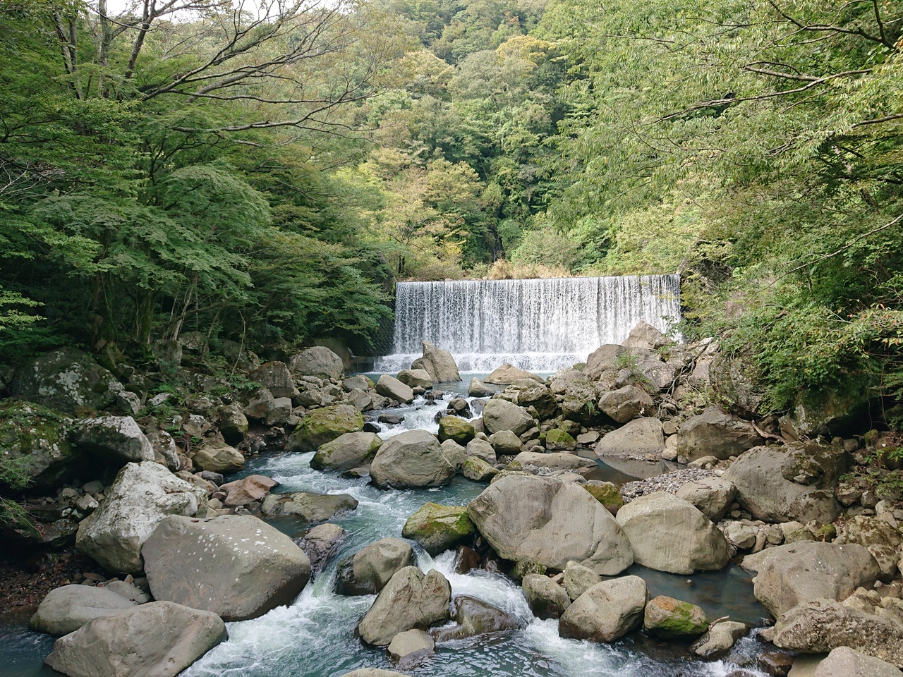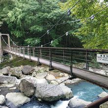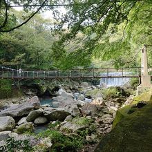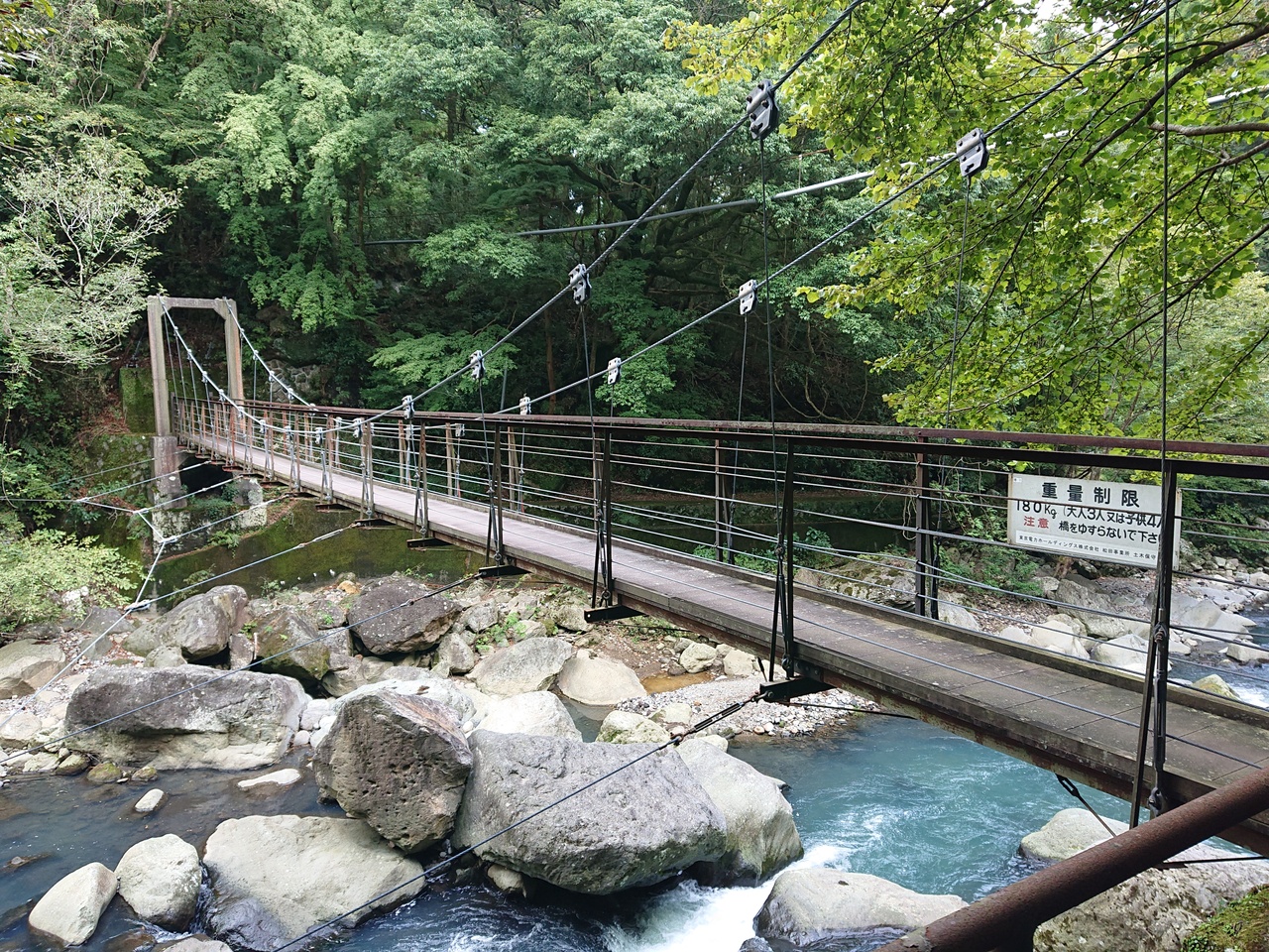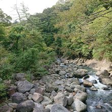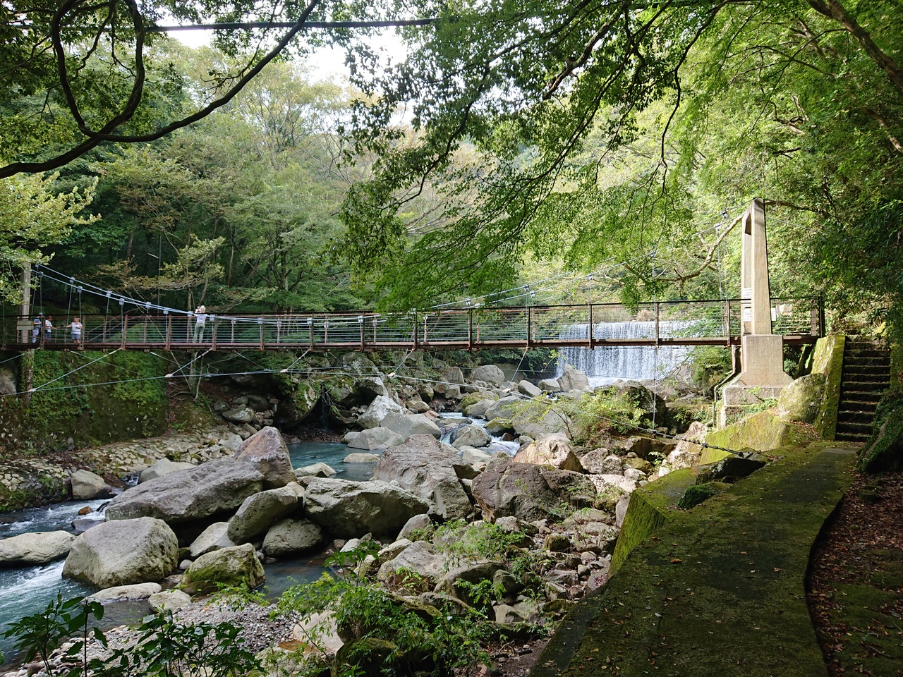 早川の渓谷まで国道1号線から急坂を降りて、橋を渡った先から1.5キロほど川沿いに遊歩道が続きます。
