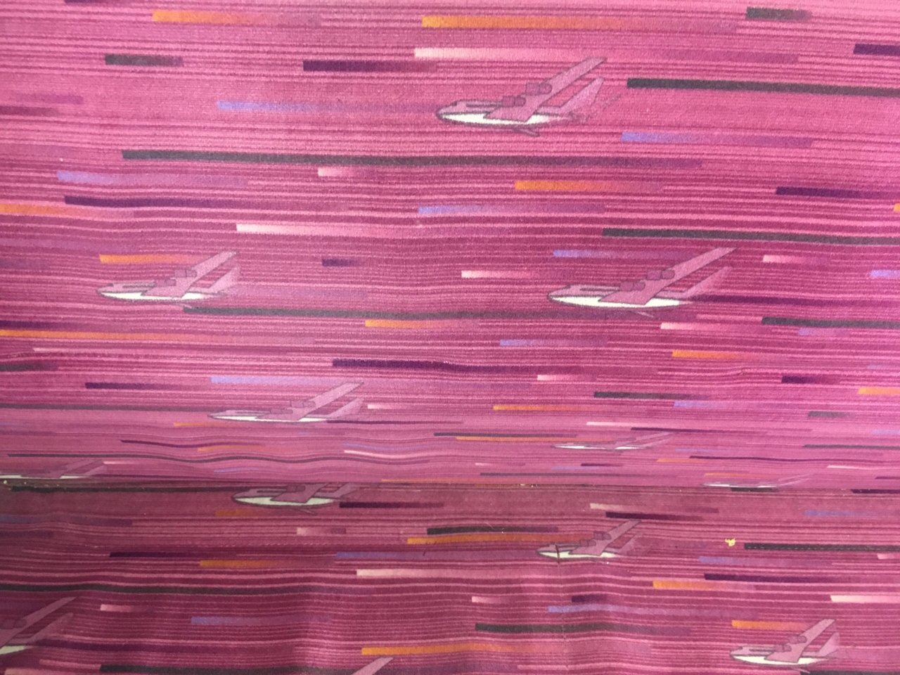 乗った列車の座席シートの柄が飛行機になっていて