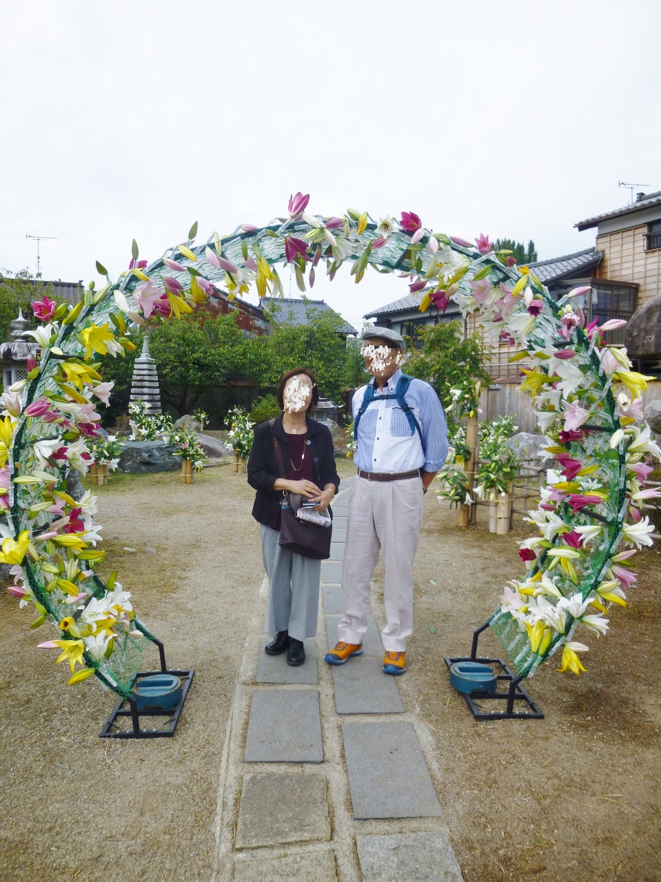お寺は街中のむしろ荒れたともいえるお寺、九品仏で有名らしい。たまたま訪問した時期が、『町屋飾る生け花、村上「大華展」』の初日で、このお寺の境内の庭に「ユリ」を一杯活けている所で、見事なユリを沢山・きれいに活けていた。たまたまお参りした我々にも、どうぞ活けて行ってください、とはさみと大きなユリを渡してくれ、夫婦で楽しく参加した。そういうことがあったので、総合評価は4にした。