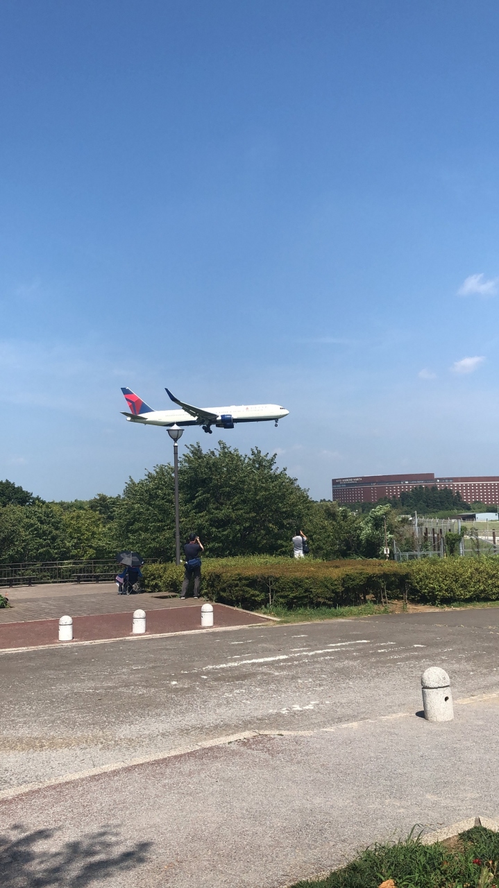 訪問した時は、飛行機が滑走路に着陸していく姿が見れました。ここに来る前に、東峰神社にも行ったのですが、神社の上を通る航路ではなったようで真上の飛行機は見れず、この公園に来て満足です。