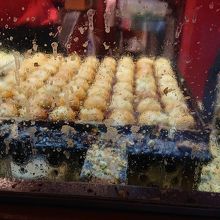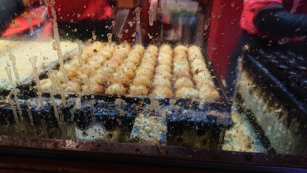 千日前発祥のたこ焼き屋さん。道頓堀店は、場所柄、外国人観光客の利用も多く、回転は良いが結構並ぶことも。火力の強い鉄板で作るので、確かに外はカリっと、中はとろーりで美味。出来立ては口の中を火傷しないように注意。ソースは甘めで、ビールやサワーが進んでしまう味。