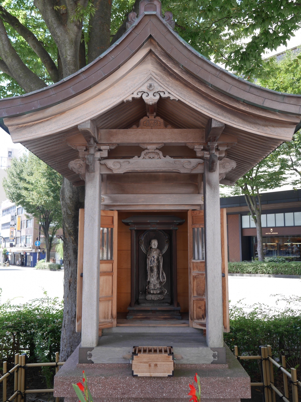 香林坊の交差点の一角に小さな祠が建っていて、その中に小さなお地蔵様がおさまっています。夢枕に立ったお地蔵様のお告げにしたがい目薬を作り前田利家の眼病を治した、という言い伝えが残るパワースポットだそうです。