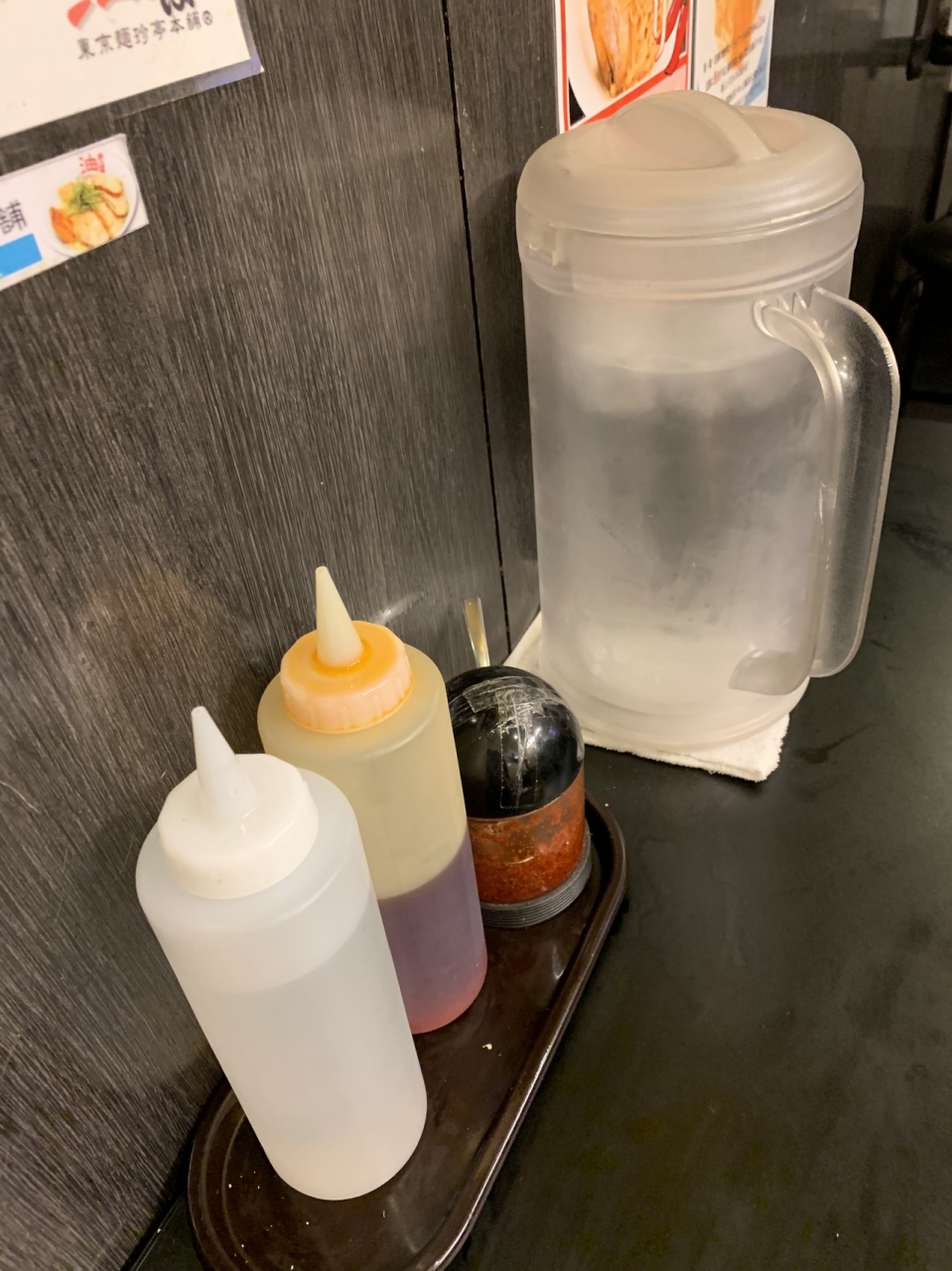 その後、ラー油とかお酢がテーブルにあるので味の変化も楽しめます。