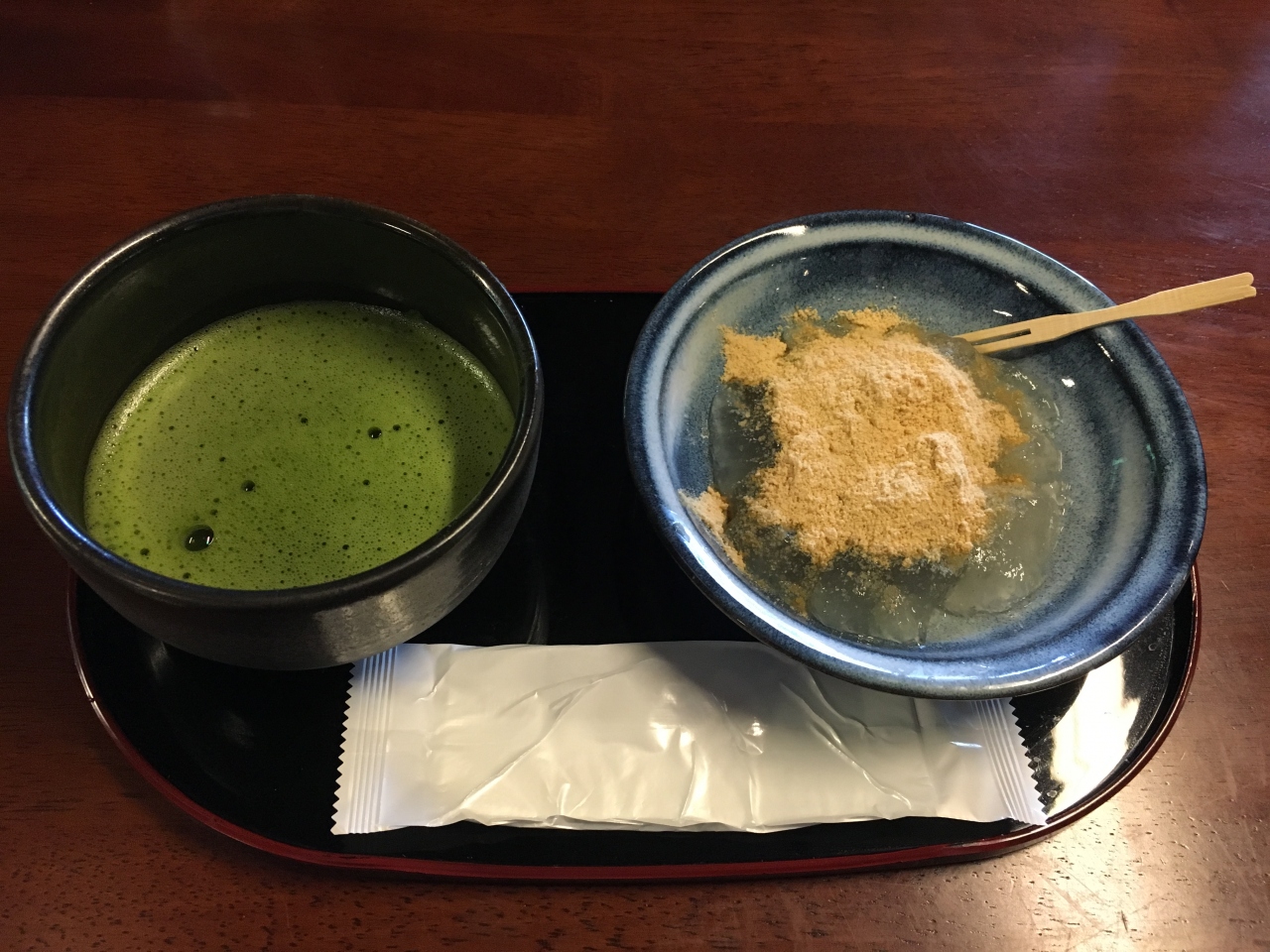 メニューには「茶そば」もありますが、「わらび餅」をいただきました。こちらのわらび餅はほんのり温かいので、初めて食べた時はビックリしましたが、これがまた美味しい!