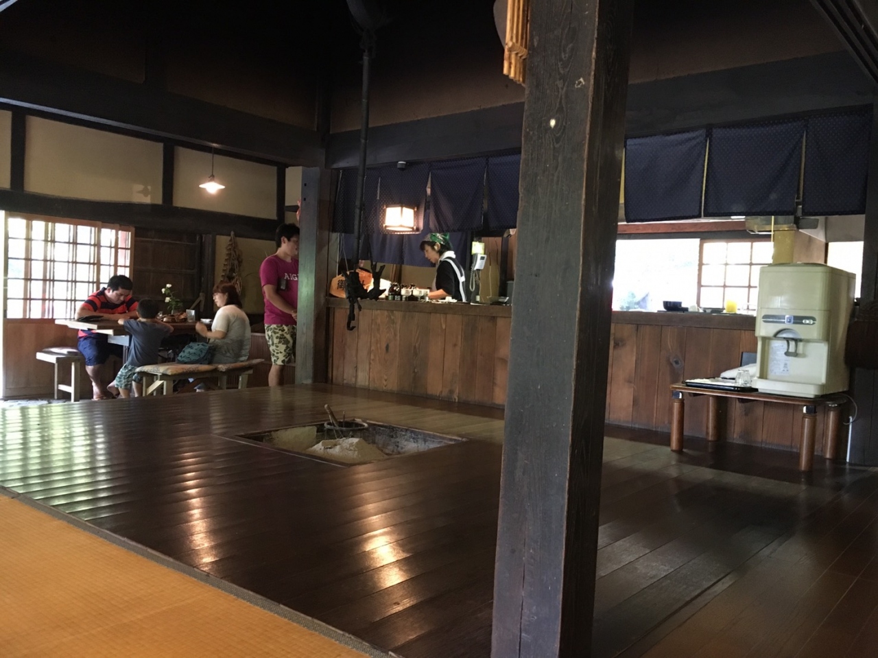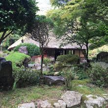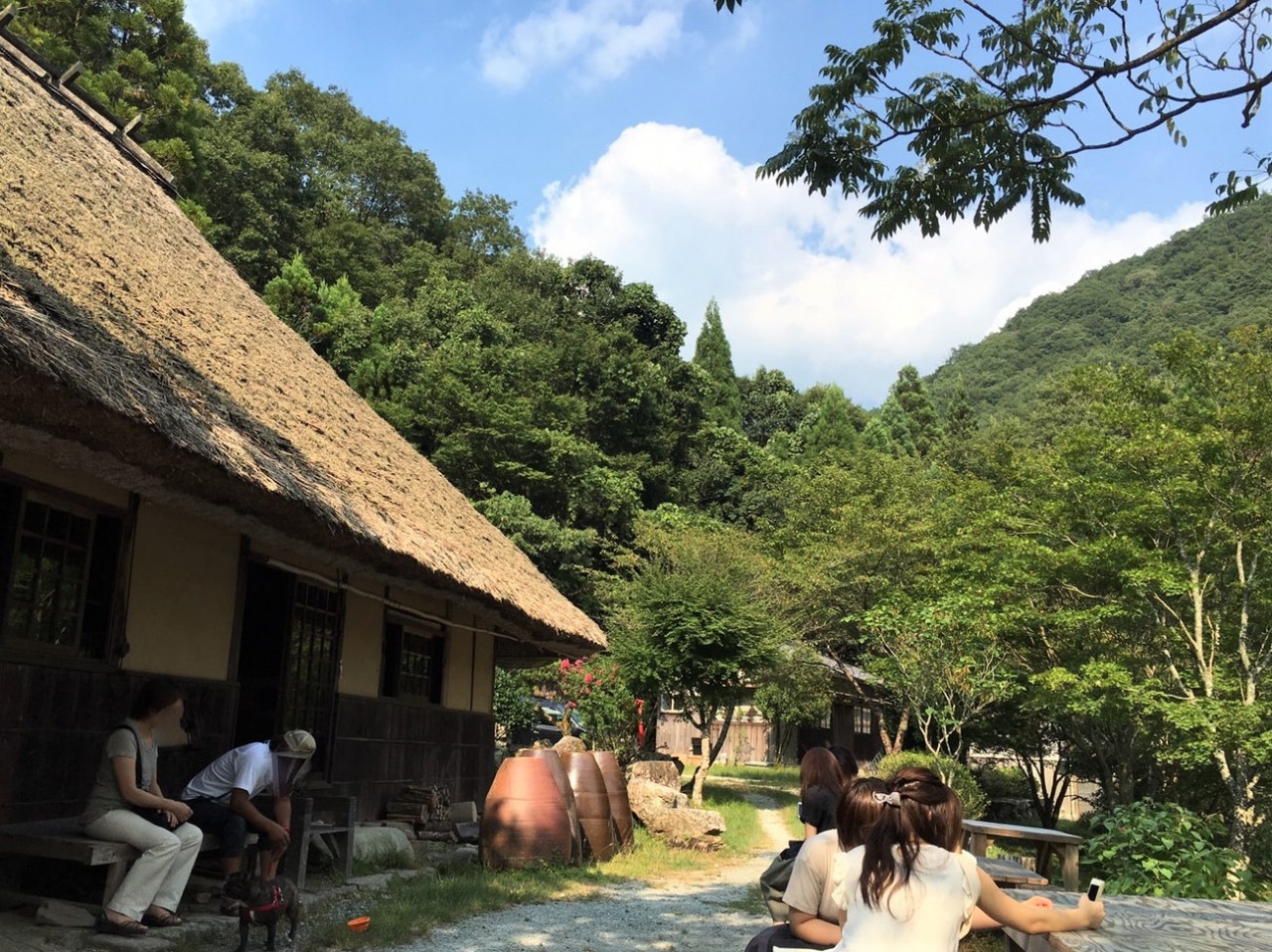 茅葺き屋根の古民家で食べる、わらび餅が美味しい
