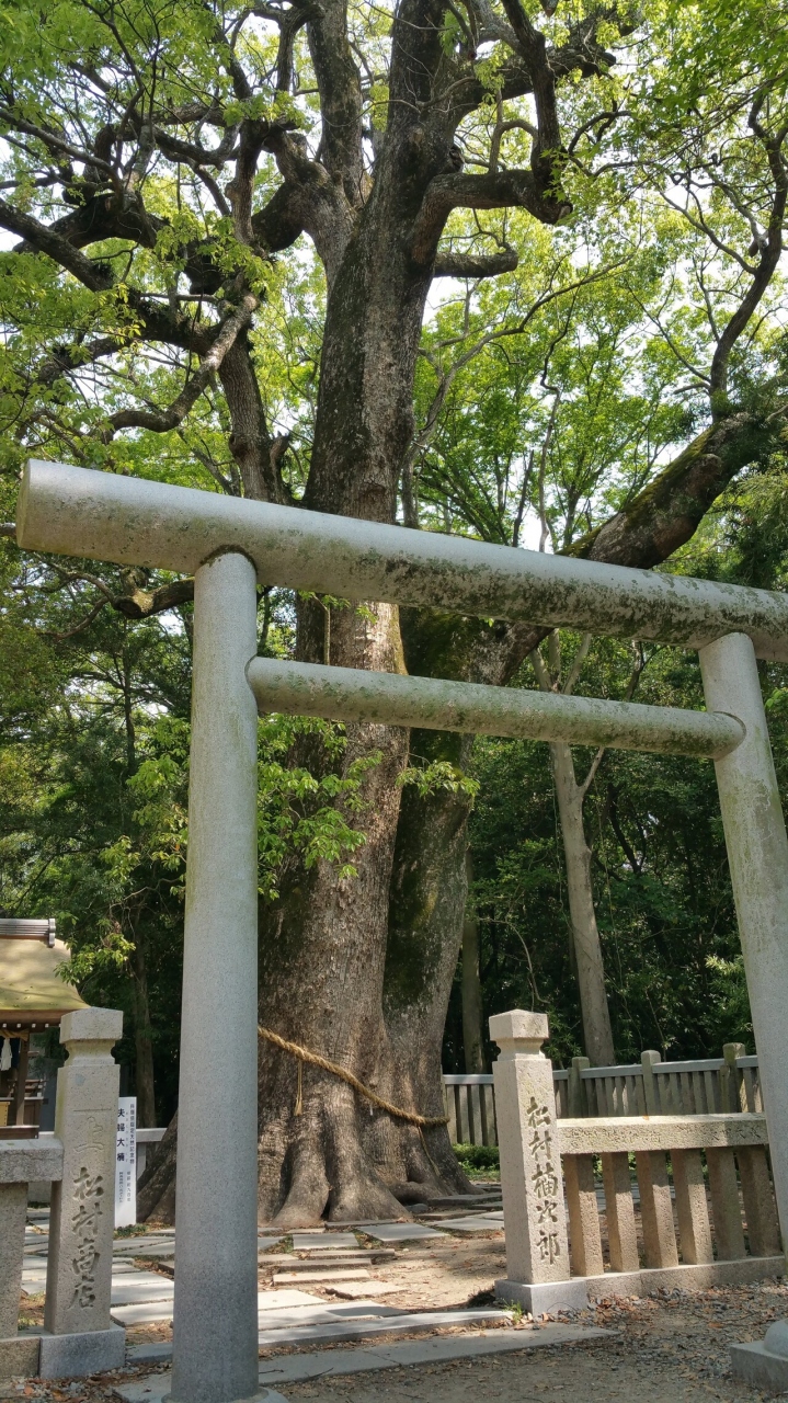 日本神話にある国生みの島淡路島にあり、日本最古といわれる格式の高い神社です(日本で24しかない神宮の1つ)。御神木は大きな楠で、途中で枝分かれしている夫婦楠です。子宝、安産、夫婦円満、縁結にご利益があるそうです。そんなに大きくはないですが、とても神聖な空気がただよっています。