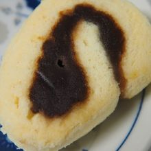 小豆餡を、しっとりとしたカステラ生地で包んでいる。
