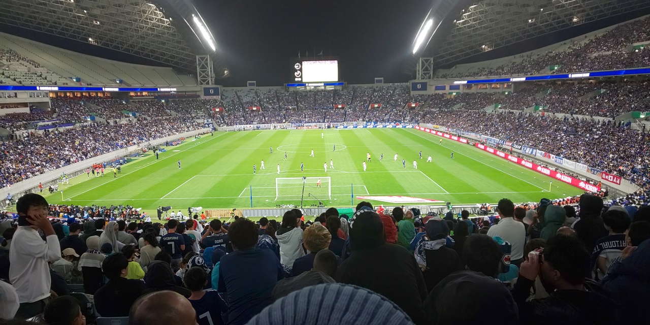 初めての日本でのサッカー観戦で初めての日本代表の試合を見ました。もちろんイギリスで見たプレミアリーグも最高でしたが日本のスタジアムで見る試合もそれなりに良かったです。駅からは少し歩きますが外観はとても大きく最高でした。
