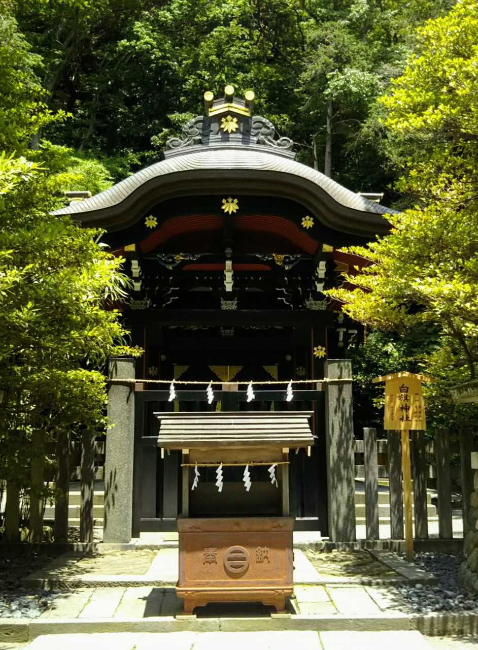 亡くなって、朝廷から「白旗大明神」の神号を賜った源頼朝を祀るために、妻の政子または息子の頼家が建立したといわれる神社です。