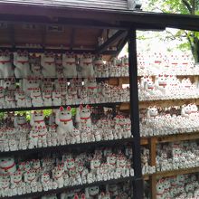 社務所では大小様々な招福猫が販売されていて、一番大きいのは5千円。良く商店で見かける猫と違い小判は持っていません。