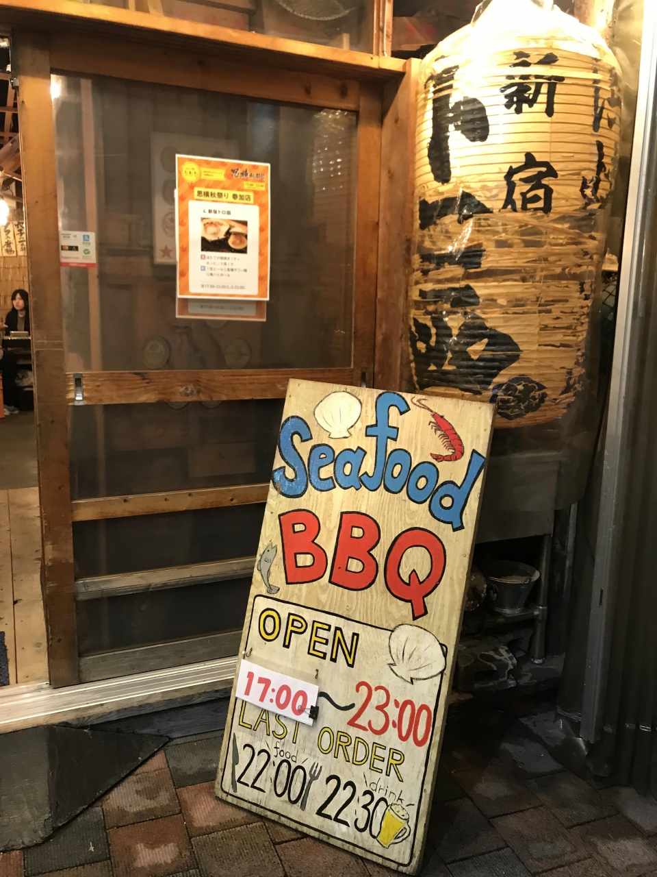 ビール箱ひっくり返し板置いての浜焼きスタイルの見せて
