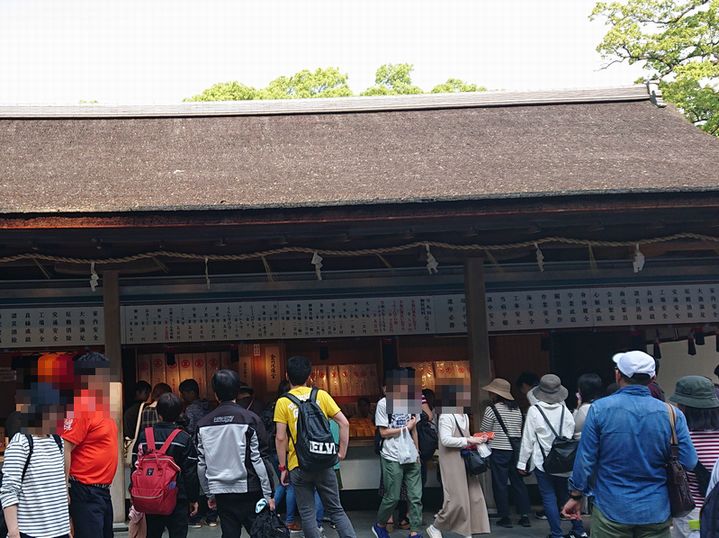 金刀比羅宮の785段の石段を上がると目の前には御本宮があり、その向かい側にある神楽殿の隣にある大きな建物です。こちらではお守りなどが種類豊富に置いてあり、購入する人で混雑していました。一番推しは「幸福の黄色いお守り」有名です。