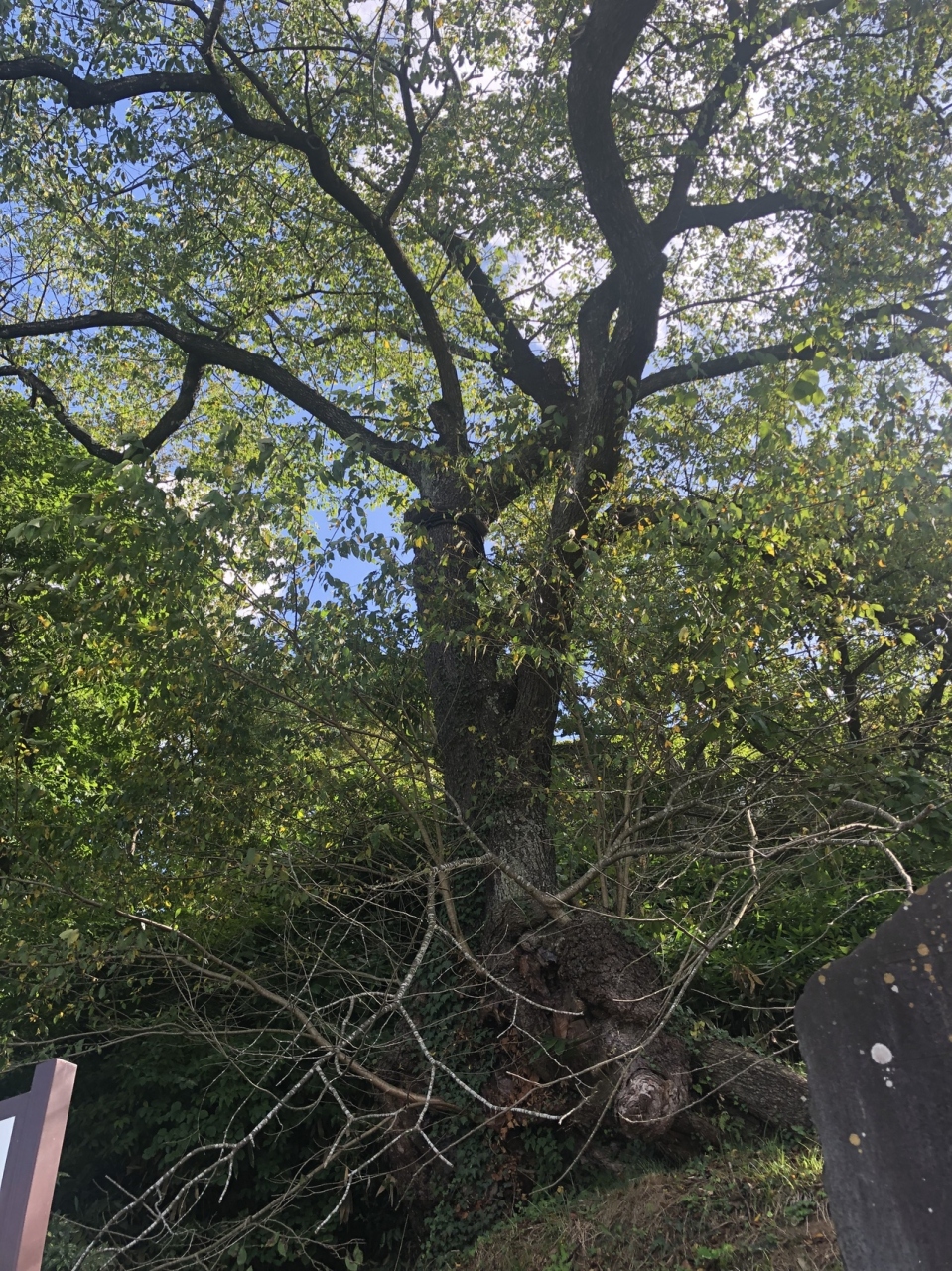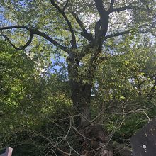 飯盛山の下りルートの白虎隊記念館の近くにあり、桜が咲いていないと、あまり目立つものではありませんでした。初代の桜の木は江戸時代初期に植樹されたもので、現在は2代目になります。10月だったので、緑の葉が生い茂っていました。