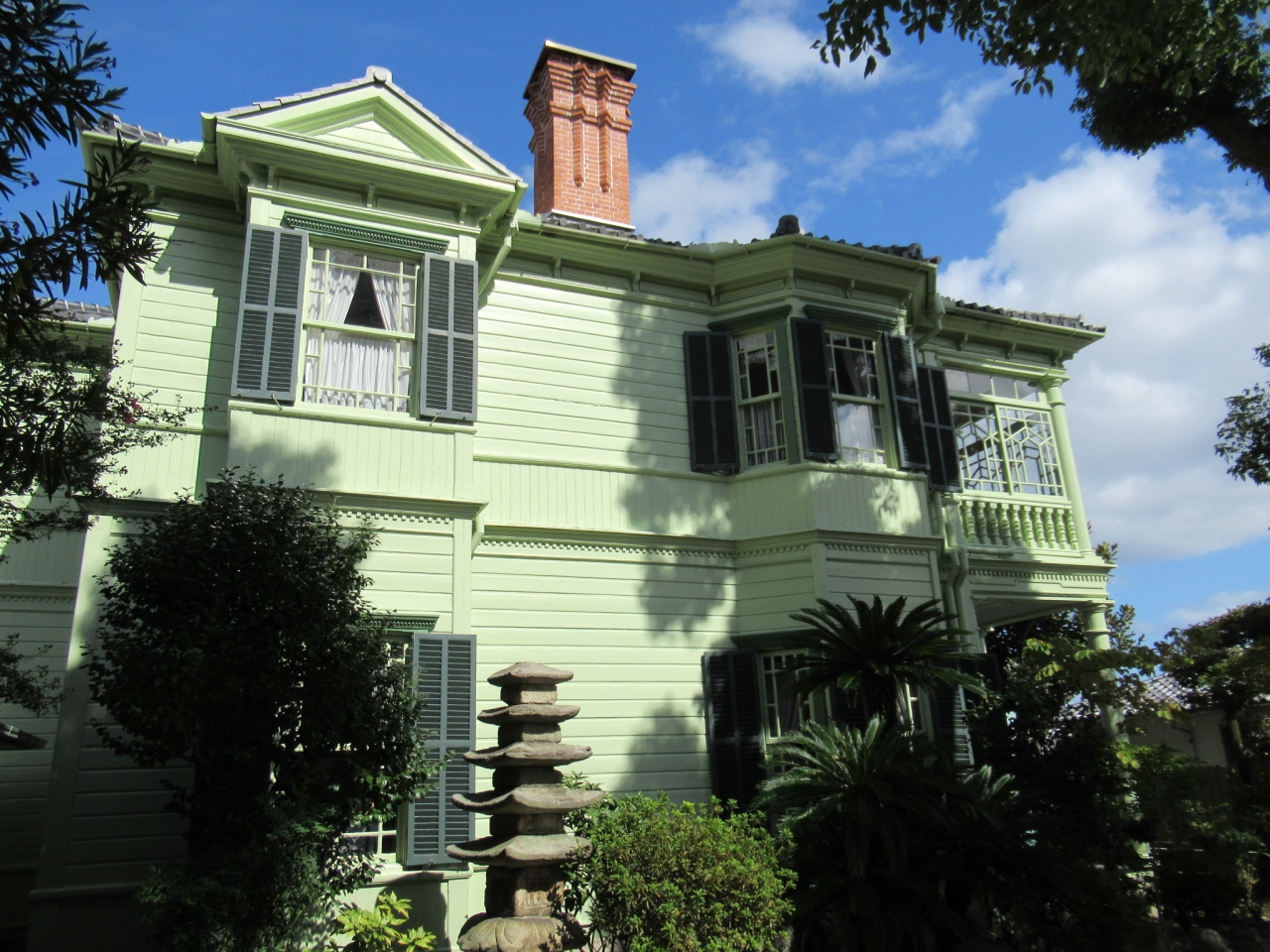 以前は「白い異人館」と呼ばれていたそうですが,修復後外壁の淡いグリーン色により,現在の名前になったそうです。