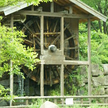 大雨の時は、この水車小屋の半分まで水量が増えるよう、です。