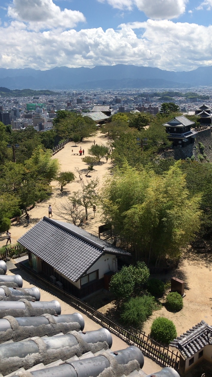 松山城へ行った際、天守へも登りました。天守閣から松山市街や海が見え、眺めがとても良かったです。残暑の厳しい季節でしたが天守閣には気持ち良い風が通っていて快適でした。城内の階段が結構急な造りになっているので健脚な方にお勧めします。