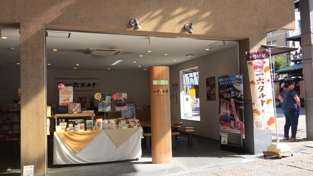 道後温泉本館のすぐ近くにある和菓子のお店です。一六タルトで有名です。1階が売り場、2階にはカフェがあります。2階のカフェを楽しみにしていたのですが時間が早くて2階はまだオープン前でした。一六タルトを買いました。抹茶味がとっても美味しかったです。個包装されているのもあるのでばらまき土産にも向いています。