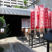 間口は狭く細いなぁーと思いながら奥に進むと少々広い境内に到着です。そこに菊野大明神・豊川大明神とも書かれた社があります。悪縁を切り断ち良縁をもたらす神様として信仰があります。合掌しました。