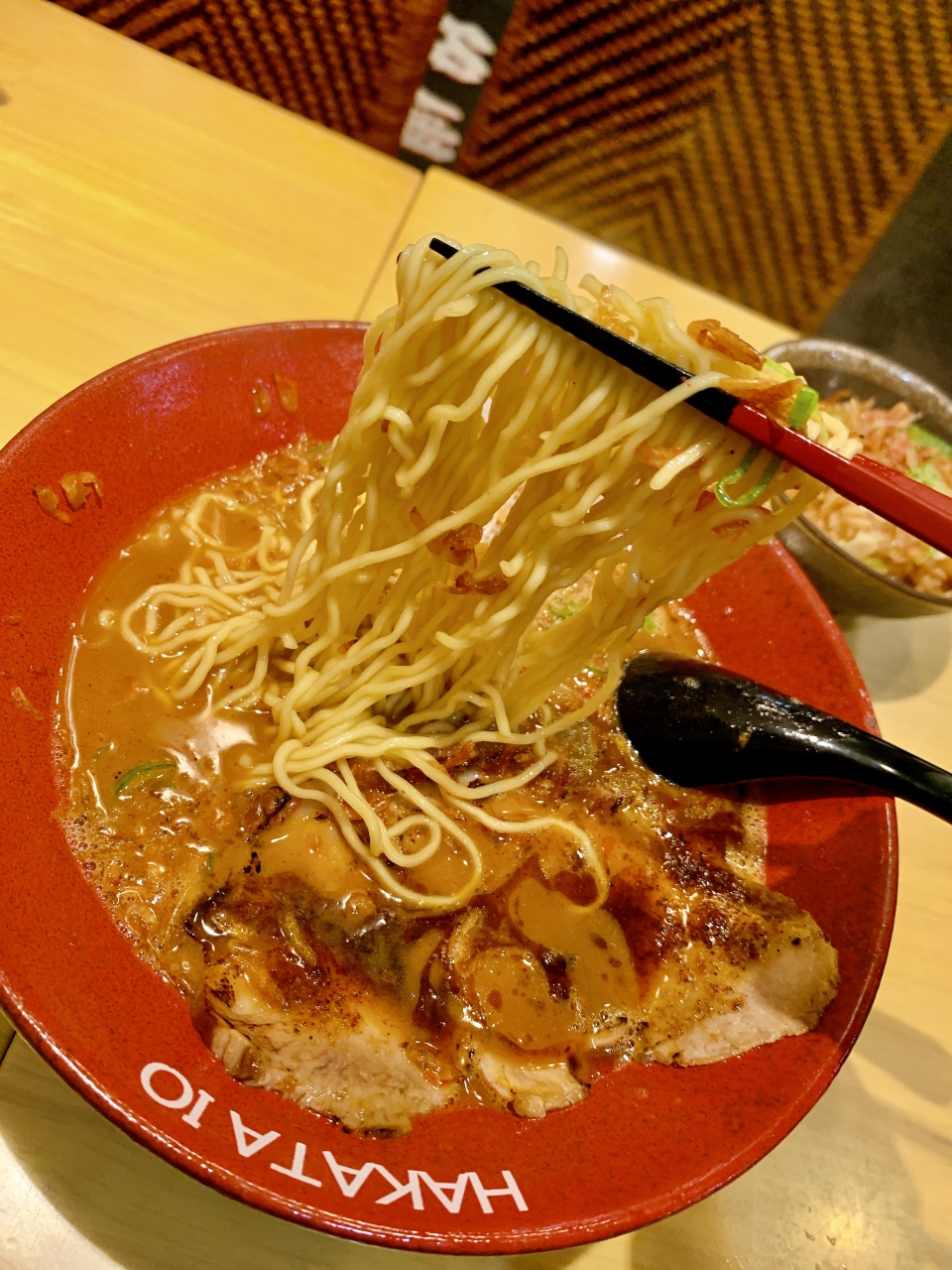 麺は青木製麺のタピオカ入り使用している加水率高めな麺は海老豚骨にマッチして美味しかった。チャーシューは大きくて食べ応えあるし最後まで海老感が切れずに食せるのが良かったな~