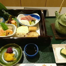 萬重弁当(華)に、+300円で土瓶の松茸に変更していただきました。