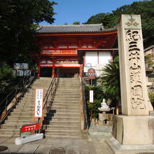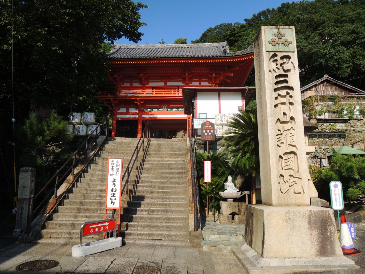 境内にある、吉祥水、楊柳水、清浄水、という三つの井戸が寺名の由来になっている歴史ある真言宗の寺です。朱塗りの山門から続く231段の手すり付き階段を登りきった境内からは、和歌山の海まで届く景色を見渡すことができました。