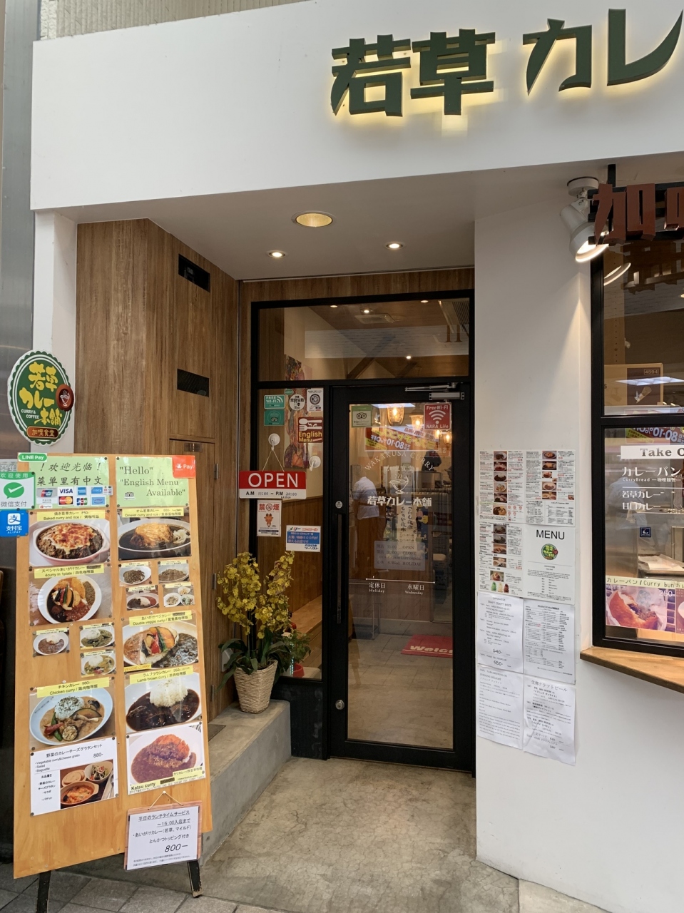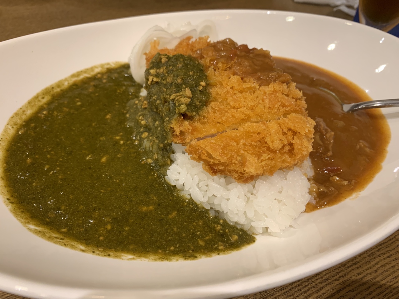 外国人観光客に人気のカレー店。カレーは比較的マイルドで食べやすい。テーブルにナッツオイルが置いてあり、好みでカレーにかけていただくと香りとコクが増していい感じ。