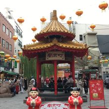 中華街の南北、東西のメインストリートが交わる交差点にあります。