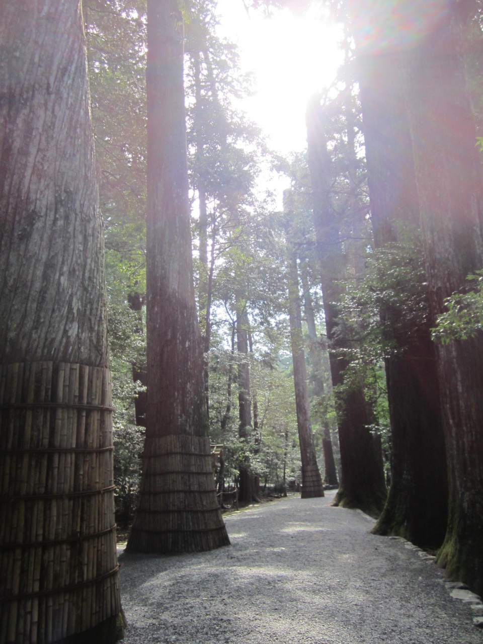朝8時過ぎで参拝者はおらず朝日がさす大杉の参道は伊勢神宮内宮にも似てとても神聖な空気が流れていました。案内板の順番に従ってお宮を参拝しバスの時間が気になり足早にお宮を後にしましたが、時間があればいつまでいたいと思う空間でした。