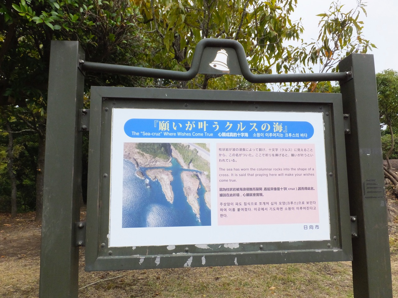 なお、一般的な「クルスの海」展望台の近くに「さんぽう」という展望台もあり、名称が謎ですが、ここから見るとクルスの字の一部が欠けて三方に入江が伸びる形に見える、ということなのかもしれません。
