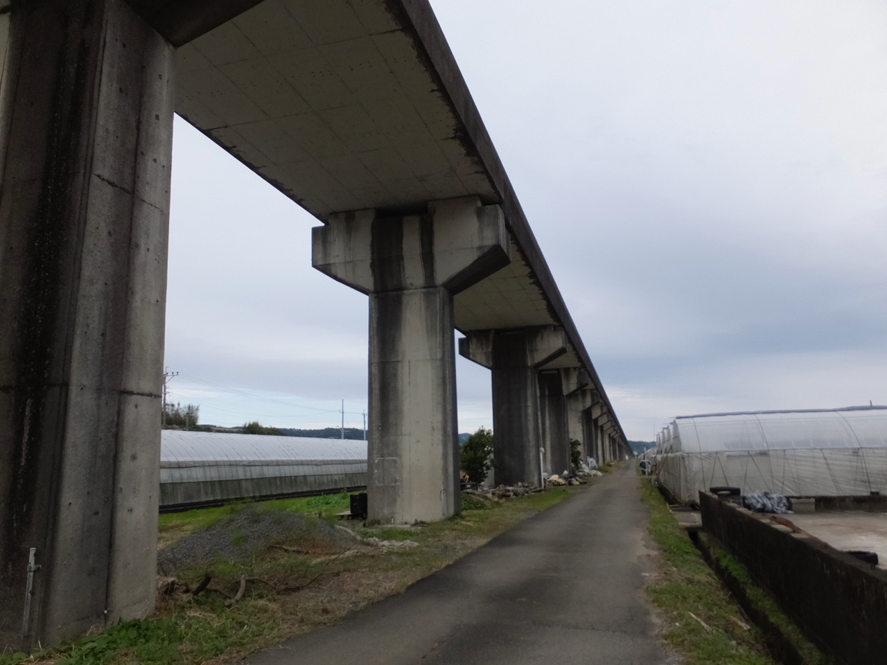 使われなくなった実験線は、高架橋がそのまま残っています。ゆるゆる宮崎、という歌の中で「リニアの跡地はソーラーパネル」と歌われるとおり、かなりの部分にソーラーパネルが載ってます。ちょっと寂しいですが、これも日当たりの良い国、宮崎ならでは、です。日豊線の車内からでもよく見えますので、観察してみましょう。