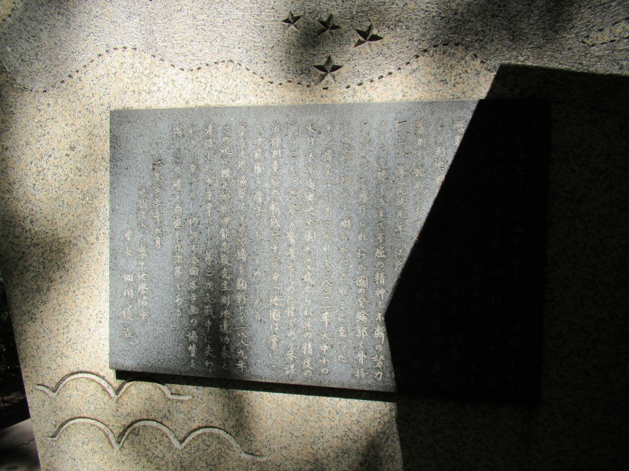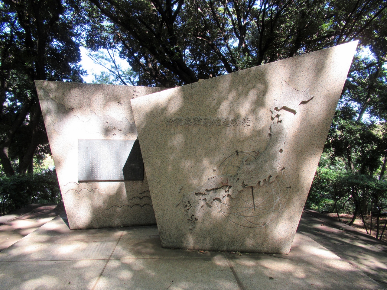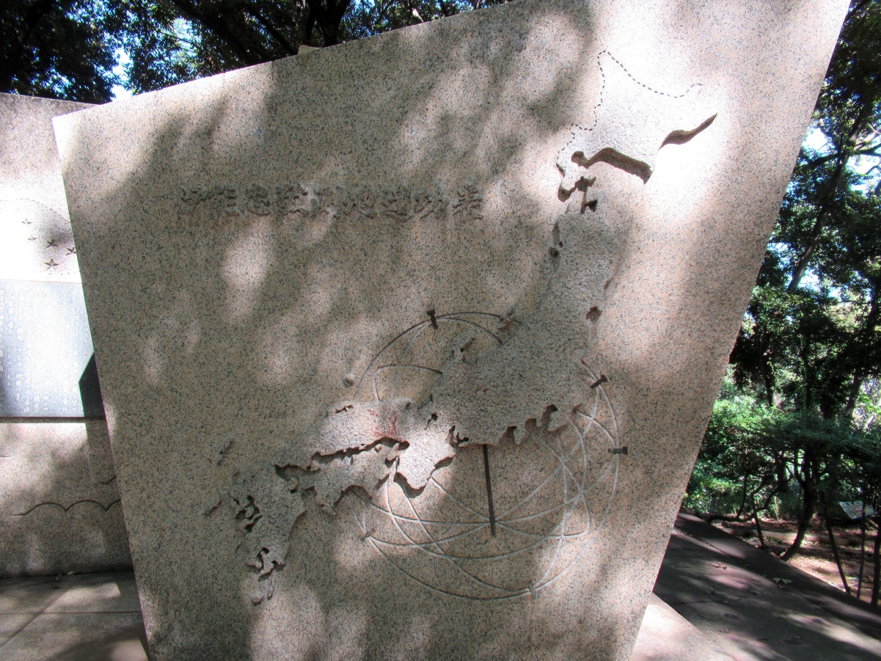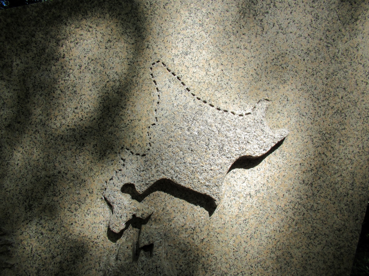 碑には日本地図が浮き彫りにされていましたが、北海道北部だけは点線で輪郭が表現されているだけでした。何故?と思って調べてみると、北部(最近の研究では、北海道全域という説が有力視されているとか)は間宮林蔵さんが測量したようです。知らなかったぁ…。