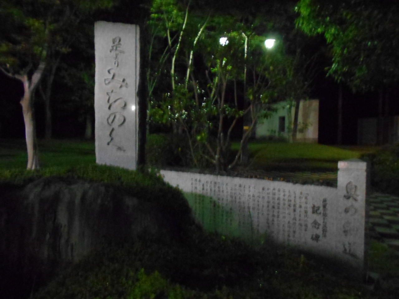 建物の脇には、大きな石柱に「是よりみちのく」とあり、芭蕉の奥の細道記念碑がある。