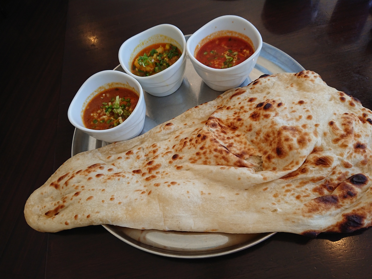 一緒に頼んだナンは、お皿からはみ出る位大きくて、パリっと焼き上がっている所と、もっちりした食感の所とかがあって、食感も楽しかったです。