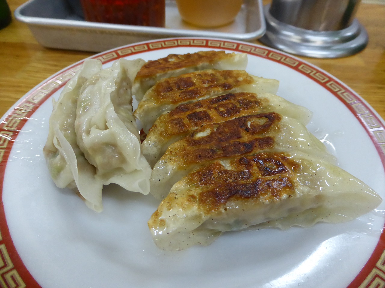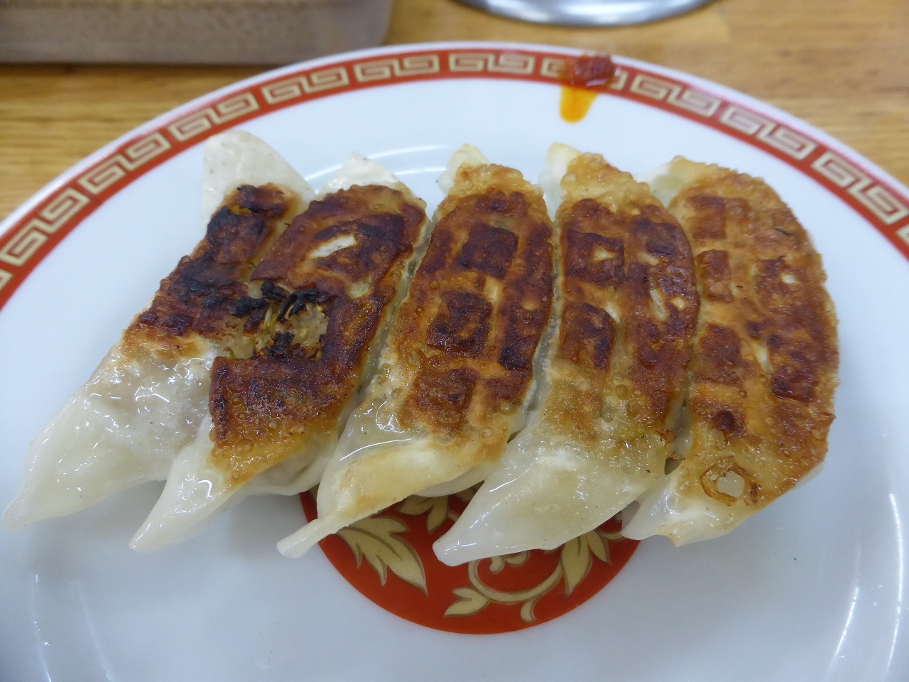 小岩菖蒲園に花菖蒲を見に行った際のランチで伺いました。日曜日の12時40分着で20人以上の行列。ただ回転は早く20分ほどで入店。メニューは餃子と飲み物しかなく、からし山盛りの小皿に醤油、酢、辣油はお好みで。そして注文せずとも一皿目が提供。一人最低2皿がルールのようです。餃子は小振りで1皿5個。薄皮で香ばしく焼かれています。餡は野菜多めで非常にあっさりした味わい。一体感もありパクパクいけます。最終的には3皿半、相方は2皿半でお腹一杯に。皮がもちもちしたものとは違った美味しさの餃子でした。